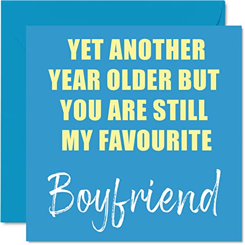 Roliga födelsedagskort för pojkvän – ytterligare ett år äldre fortfarande min favorit – skämt humor gratulationskort från flickvän födelsedagspresenter, 145 mm x 145 mm skämt humor gratulationskort present till partner