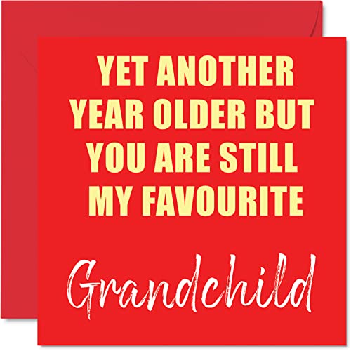 Roliga födelsedagskort för barnbarn – ytterligare ett år äldre fortfarande min favorit – skämt grattis på födelsedagskort från farfar morförälder mormor barnflicka födelsedagspresenter, 145 mm x 145 mm skämt humor gratulationskort