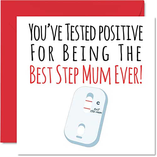 Roliga födelsedagskort för styvmamma – Positivt bästa styvmamma någonsin – skämt grattis på födelsedagskort för styvmamma från dotter son, styvmor födelsedagspresenter, 145 mm x 145 mm mors dag gratulationskort present