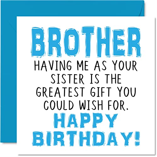 Roliga födelsedagskort till bror – Having Me As Your Sister Greatest Gift Wish – Skämt grattis på födelsedagskort från syster, syskon skämt födelsedagspresenter 145 mm x 145 mm syskon gratulationskort