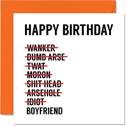Roliga födelsedagskort för pojkvän – överskridande lista – skämt grattis på födelsedagskort för pojkvän från flickvän, partner, pojkvän, födelsedagspresenter, 145 mm x 145 mm gratulationskort