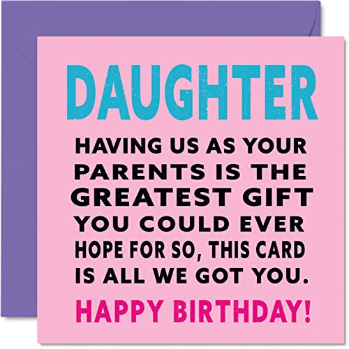Roliga födelsedagskort till dotter – ha oss som föräldrar bästa gåva önskan – skämt grattis på födelsedagskort från föräldrar mamma pappa, skämt födelsedagspresenter, 145 mm x 145 mm gratulationskort