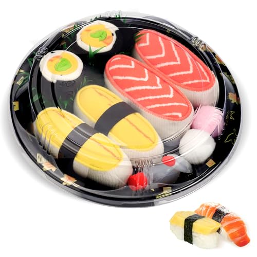AGRIMONY Roliga sushiformade strumpor – roliga gåvor för kvinnor och män – nyhet galen funky mat dum bomullsstrumpor julklappar, L--sushi-3 par-01, Medium-Large