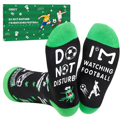 Roliga strumpor fotboll gåvor för pojkar, nyhet gåvor för män jul strumpfyllare, födelsedagspresenter julklappar för kvinnor far son du honom tonåring pojkar fotboll, Grön, 38-46