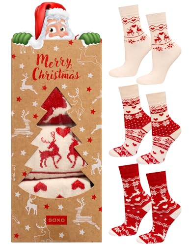 soxo Julklapp Strumpor Dam Storpack Funny Christmas Socks Kvinna Roliga Julklappar Bomullsstrumpor 35-40 Beige 3 Par