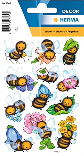 HERMA 3569 Roliga djurklistermärken för barn, roliga bin (36 klistermärken, papper, matt) självhäftande, permanent självhäftande motivetiketter för flickor och pojkar, färgglada