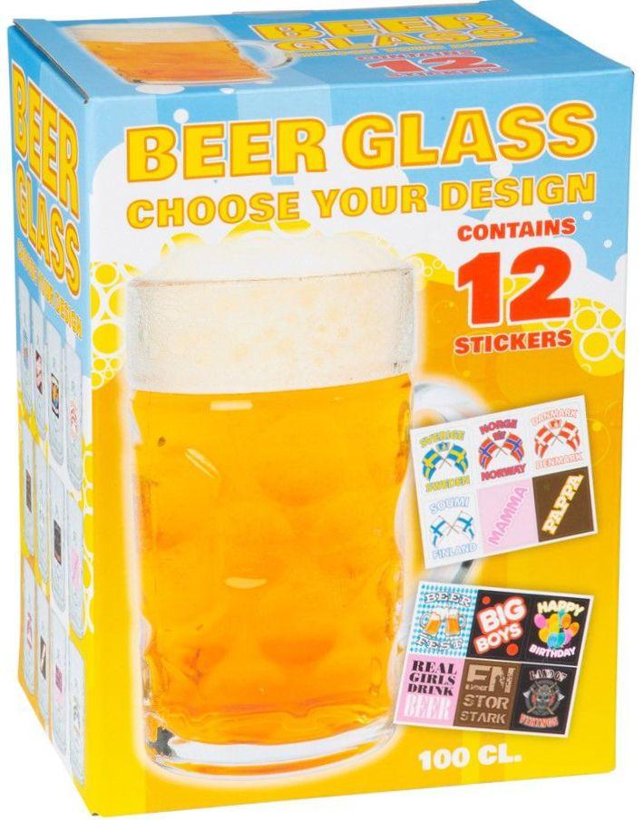 Stort Anpassningsbar Ölglas med 12 st Roliga klistermärken - 1 l