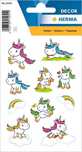 HERMA 15451 Roliga djur klistermärken för barn, baby enhörning (20 klistermärken, papper, glittrande) självhäftande, permanent självhäftande motiv etiketter för flickor och pojkar, färgglada
