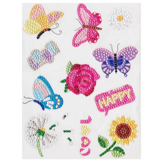 Craft Planet CPT 6561090 roliga klistermärken-blommor och fjärilar, blandade