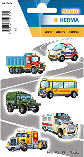HERMA 15464 klistermärken för barn, roliga bilar (6 klistermärken, folie, glänsande) självhäftande, permanent självhäftande motiv etiketter för flickor och pojkar, färgglada