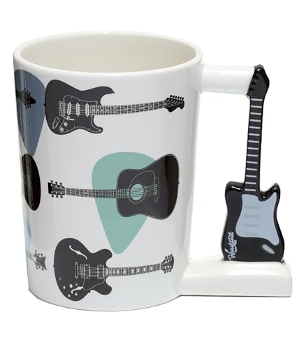 Puckator Headstock gitarr keramiskt format handtag te kaffemugg – roliga hemtillbehör – söta gåvor till flickvän – stora muggar för män kvinnor varma drycker – koppar presenter – hemlig jultomte