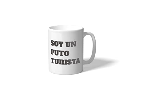 Fisura - Original vit rån. Rolig kopp "Jag är en Turist" Muggar med roliga fraser stor frukost. Kapacitet: 320 ml. Porslin
