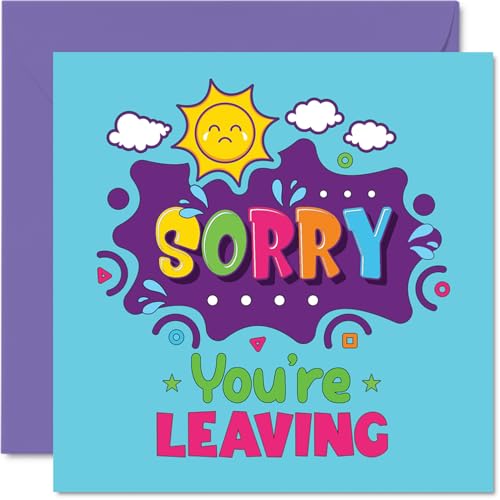 Lämna gåvor för kollegor kvinnor män – 'Sorry You're Leaving' – 'Sorry Your Leaving Happy' i ditt nya jobbkort, 145 mm x 145 mm gratulationskort, roliga presenter som lämnar gratulationskort
