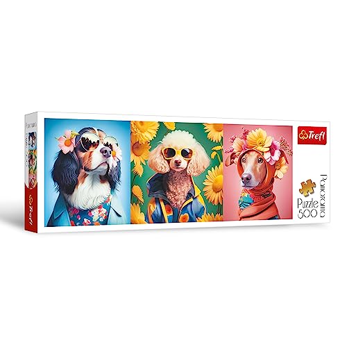 Trefl -Modeparad, panoramisk hund-pussel utgåva 500 element - roligt pussel för djurälskare, hundporträtt, pussel för vuxna och barn från 10 år.