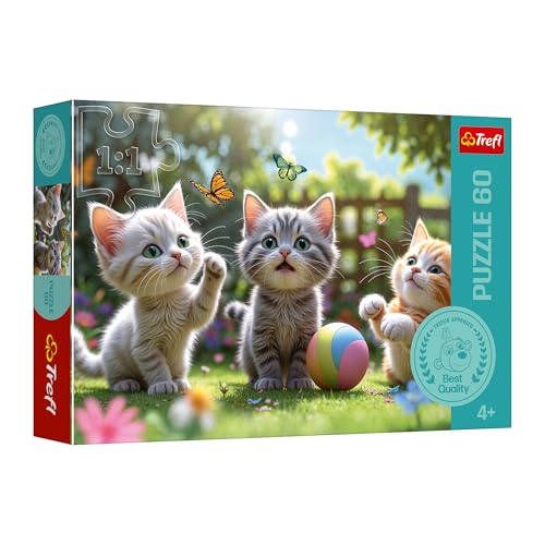 Trefl - The Treflik Family, Tre kattungar – Pussel med 60 delar – Färgglada pussel med kattungar, underhållning, roligt för barn från 4 år