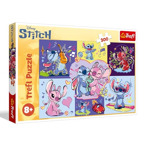 Trefl - Lilo och Stitch, Zakecony Stitch - 300-bitars pussel - Färgglatt pussel med sagofigurer, kreativ underhållning, roligt för barn från 8 år
