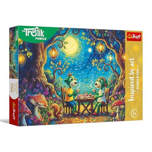 Trefl - The Treflik Family, Inspired By Art, Möte på kaféet – 100 bitar – Färgglada pussel med sagofigurer, kreativ underhållning, roligt för barn från 5 år och uppåt
