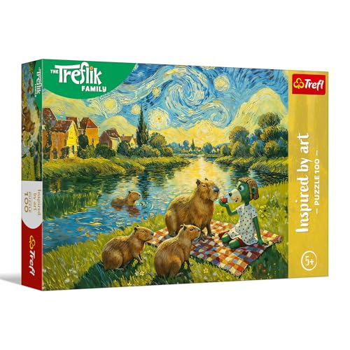 Trefl - The Treflik Family, Inspired By Art, Mata kapybaror – 100 bitar – Färgglada pussel med sagofigurer, kreativ underhållning, roligt för barn från 5 år