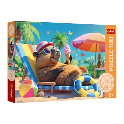 Trefl - The Treflik Family, Capybara Style Relaxation – 100-bitars pussel – Färgglada pussel med djur, kreativ underhållning, roligt för barn från 5 år