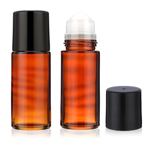 YUXIANLB 50 ml glasflaskor, 2 stycken, påfyllningsbara roll-on-flaskor för eteriska oljor, parfym, kosmetika, rollerball-applikator, tomma behållare för deodorantflaskor