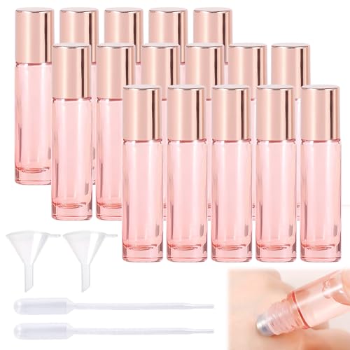 Eteriska oljor Roller flaskor, 16 stycken glasrullningsflaskor, roll-on flaska tom 10 ml med rostfria rullbollar, påfyllningsbar roll-on, flerfärgade glasflaskor för eterisk olja, aromaterapi-parfym