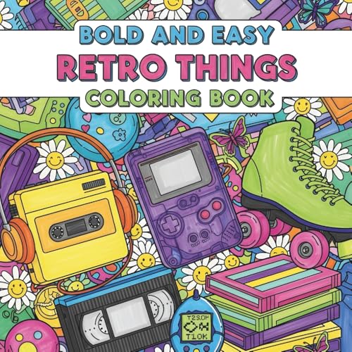 Bold and Easy Retro Things colorink Book: 45 high-quality illustrations of iconic objects from the 80s, 90s, and early 2000s (transparent phones, roller skates, instant cameras, and more).