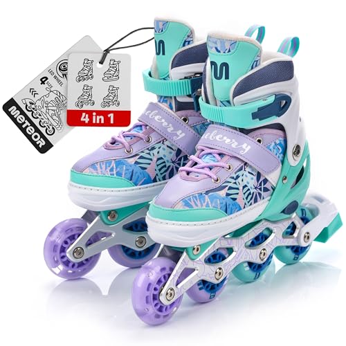 Meteor Youth Kids Junior Roller Skates Adjustable Roller Skates for Boys Girls 5 Sizes (M, Blueberry 4w1)
