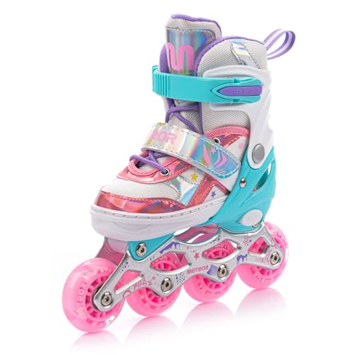 Inlines Rullskridskor Barn Rullskridsko för Barn Justerbar Rullskor Rollerblades för Nybörjare med Självlysande Hjul METEOR
