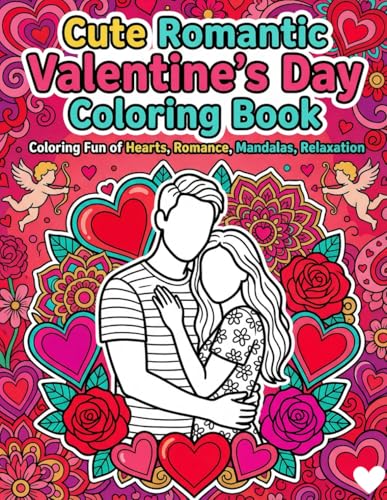 Cute Romantic Valentine's Day Coloring Book: Size 8.5*11 | Pages 104 | Big Images of Sweet Heats,Cute Couples,Romantic,Relax,Mandala and More | Color Test Page Included | Adults ad Kids