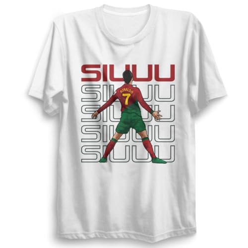 Siiuuuu fotboll Ronaldo-inspirerad t-shirt sporttopp, Vitt, 7 År