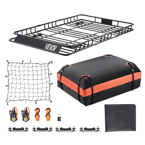 VEVOR Lastkorg för takräcke, 130,5 x 91,5 x 12,7 cm lasthållare för tak med 15 cu ft vattentät lastväska, 90 kg kapacitet Universal lasthållare för SUV, lastbil