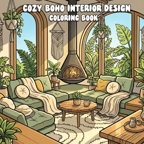 Cozy Boho Interior Design Coloring Book: 40 Relaxing Boho Room & Home Decor Coloring Pages for Teens