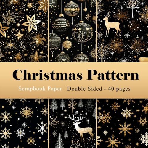 Christmas Pattern Paper Black and Gold , Sheet Snowflake Reindeer Festival Decorative Craft Paper Double-Sided: for Card Making Junk Journal Planners Aesthetic Room Decor