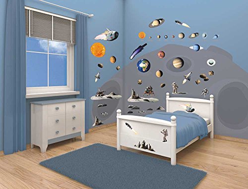 Walltastic Space Adventure Room Decor väggklistermärke, unisex, barn, flera färger, en storlek (storlek tillverkare: 6 Large Sheets)