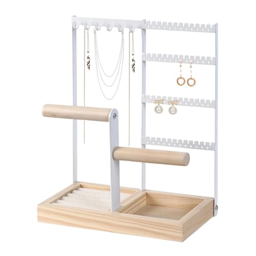 Necklace Holder Organizer, 4-Tier Metal Jewelry Stand, Elegant Jewelry Storage with Wooden Base, 22.5×12×28cm, Bangle and Necklace Organization, Ideal for Teen Room Decor, Bedroom