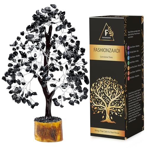 FASHIONZAADI Black Tourmaline Gemstone Tree Silver Wire For Feng Shui Bonsai Reiki Crystals Healing Money Trees Chakra Balancing Stone Decoration Lucky Living Room Decor