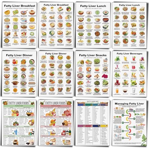 Sinload 12 Pcs Fatty Liver Food Chart Poster Fatty Liver Diet Grocery List Health Diet Food Guide for Room Kitchen Decor