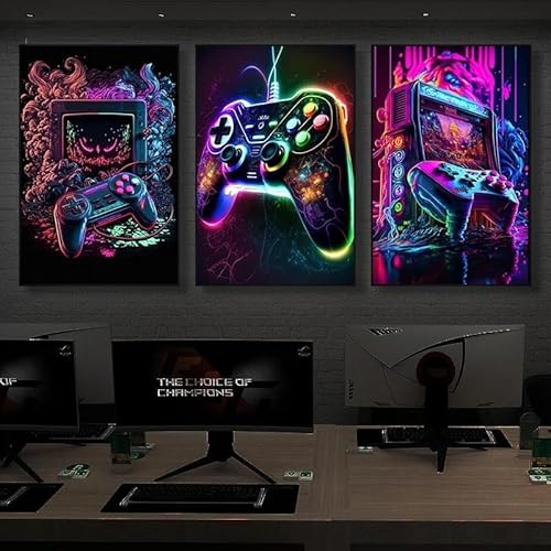 Spel duk målning spel kontroll gamer gaming neon affisch kanvas tryck vägg konst bilder esports gamer room decor 50 x 70 cm x 3 st ingen ram