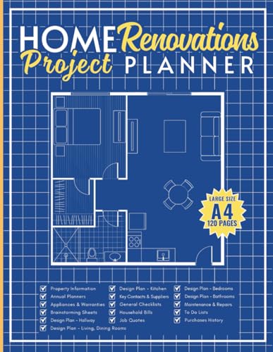 Home Renovation Project Planner: Room By Room Organizer to Design your New Home or Manage your DIY Projects by Planning, Design, Layout, Cost Pages & much more.