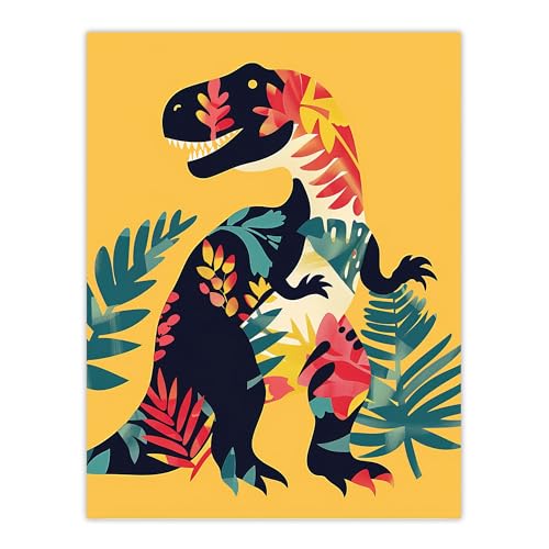 Artery8 Boho Botanical Pattern T Rex Dinosaur Design Living Room Large Wall Art Poster Print Thick Paper 18X24 Inch