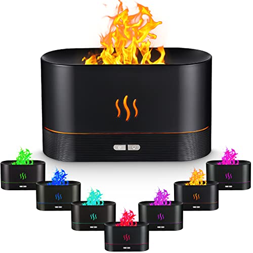 Birshe Aroma Diffuser med Flame Effect Light, 180ml Flame Diffuser Humidifier, 7-Colour Light Essential Oils Diffuser for Home Office Room Scent Yoga, Waterless Auto Shut Off/Low Noise