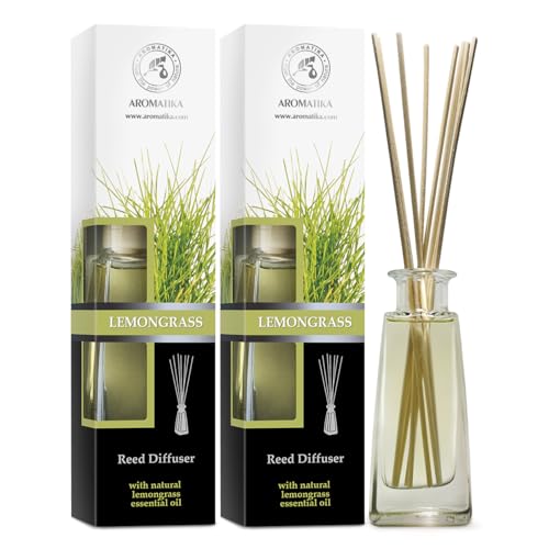Reed Diffuser Lemongrass - 2x100ml - Room Diffusers Set with Lemongrass Essential Oil - Scented Diffusers with Sticks - Home Fragrance - Air Freshener - Lemongrass Scent - Room Fragrance