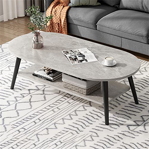 YXDFG Ovalt soffbord,2-lagers modesoffbord,med öppna hyllor för förvaring och display 2-vånings soffbord,Små moderna möbler för Living Room Home Office,Grey