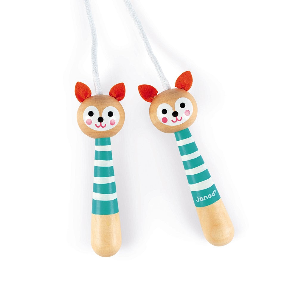 Janod - Wooden Rabbit Skipping Rope - Adjustable Size - From 3 Years Old, J03197, Yellow Pink