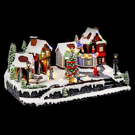 Upplyst julmarknadsby med musikalisk rörelse 56 LED-lampor