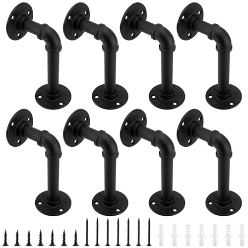 FUNSUEI 8 stycken industriella rörhållare 14 x 8 cm, rörhyllhållare, vintage, vägghållare, rörhyllhållare, hyllvinkel metall, vintage, vägghylla, hållare, svart för flytande hyllor