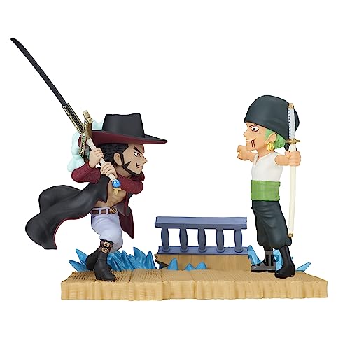 Banpresto BP88603P World Collectable Roronoa Zoro Vs Dracule Mihawk Figur, One Piece, Log Stories, 7 cm, Multifärg