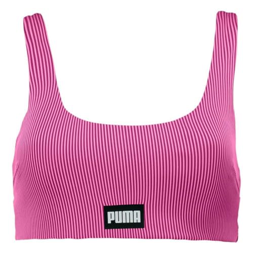 PUMA Badbyxor kvinnor ribbad skopa hals topp 1P, Rosa/svart, XL