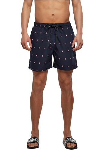 Urban Classics - Embroidery midnightnavyflamingo Badbyxor - S - Blå/Rosa