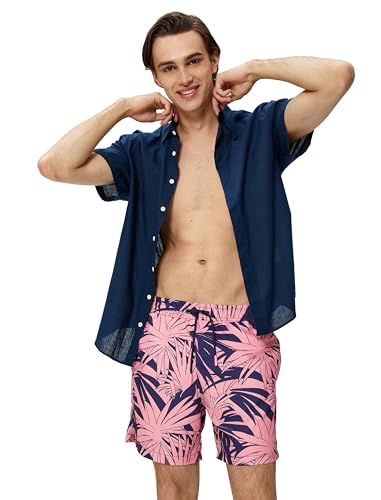 Koton herr dragsko ficka detalj blad tryckta badbyxor, Rosa design (2d9), L